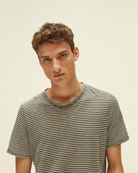 Short-sleeved striped cotton and linen T-shirt Round neck 50% Linen, 50% Cotton