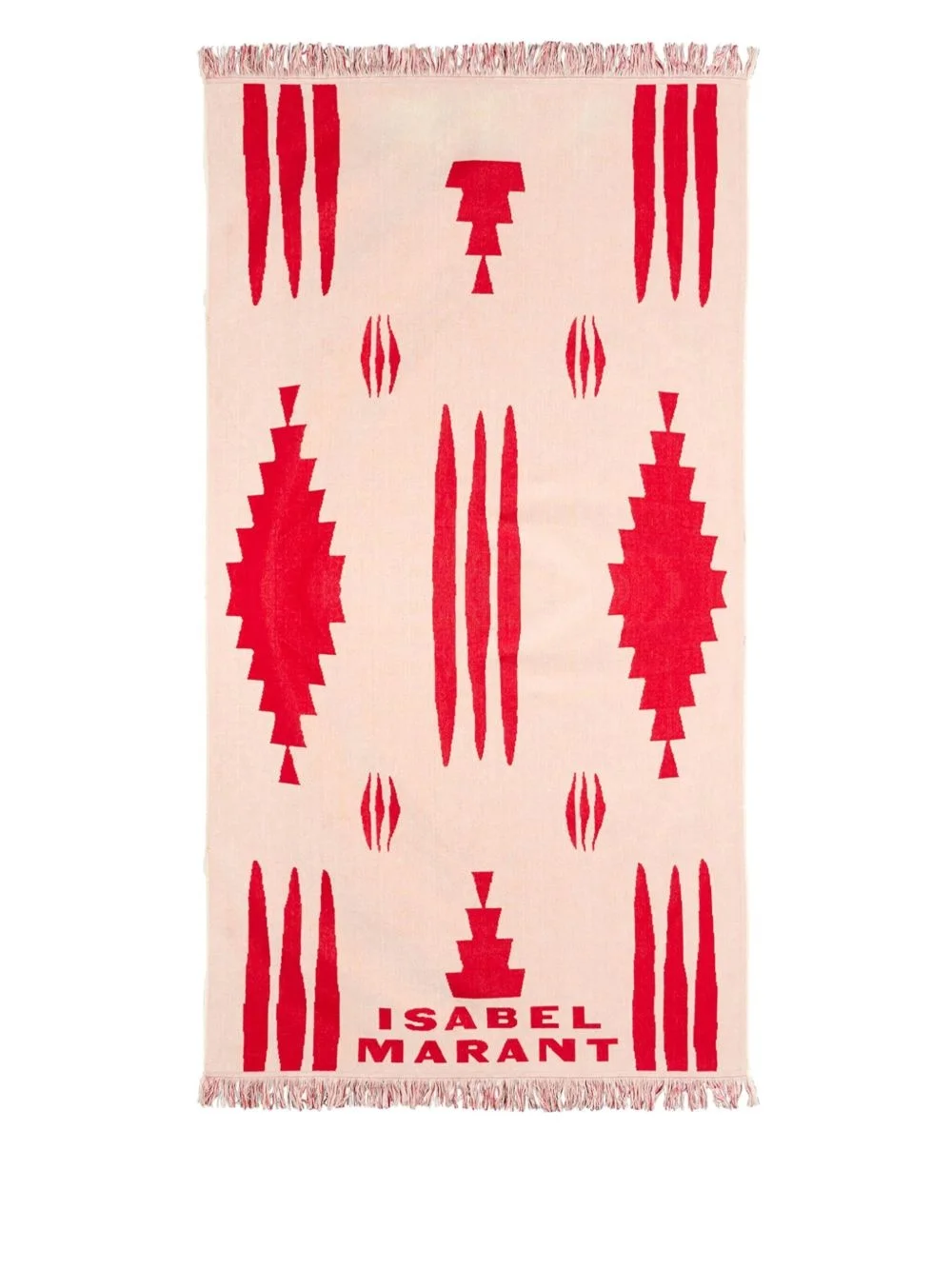 logo-jacquard beach towel Highlights - Red - Rectangle shape - Towelling finish - Fringed edge Imported Composition Cotton 100% Washing instructions Read Manufacturer Guidelines