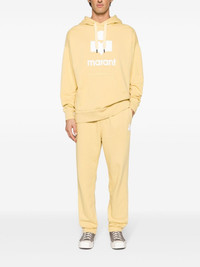 Mailesco logo-flocked track pants Highlights - Sherbet yellow/ecru - Recycled cotton blend - Jersey texture - Flocked logo - Tapered leg - Mid-rise - Elasticated drawstring waistband - Two side slit pockets - Two rear welt pockets - Straight hem - French terry lining Imported Composition Outer: Recycled Cotton 88%, Polyester 12% Lining: Cotton 100% SIZE & FIT Model measurements Height 6 ft 2 in(1.89 m) Bust/Chest 37.79 in(96 cm) Hips 37 in(94 cm) Waist 29.92 in(76 cm) FittingInformation Designed for a relaxed straight leg, allowing a comfortable and loose fit over the leg Adjust this piece’s waistband to your preference using the drawstring Made from a midweight non-stretch fabric, this piece offers minimal elasticity when worn This piece fits true to size – take your usual size Measurement INSIDE LEG 29.52 in(75 cm) Outside Leg 41.33 in(105 cm) FRONT RISE 13.38 in(34 cm) WAIST 25.19 in(64 cm)