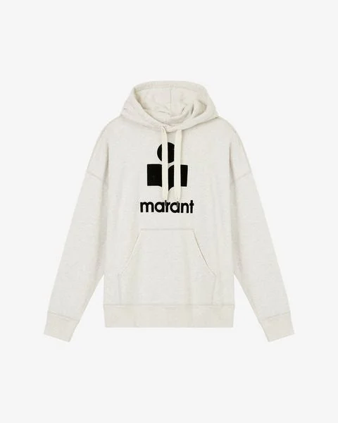 Ecru-white cotton hoodie with long sleeves "Marant" logo print Hoodie drawstring closure Kangaroo pocket Care & Sustainability Machine wash on a gentle cycle, inside out and at a maximum temperature of 30°C For more details, see the instructions on the composition label