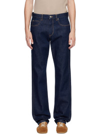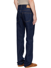 Non-stretch denim jeans. · Straight-leg · Mid-rise · Belt loops · Five-pocket styling · Zip fly · Logo patch at back waistband · Contrast stitching in tan Supplier color: Dark midnight 100% cotton. Made in Morocco 252600M186003