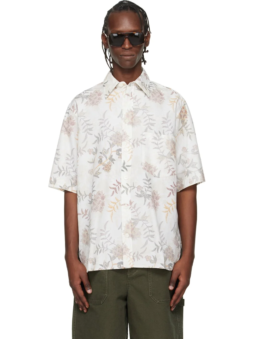 Cotton poplin shirt. · Floral pattern printed throughout · Spread collar · Button closure · Patch pocket at chest · Shirttail hem Supplier color: Ecru 100% cotton. Made in India 261600M192017