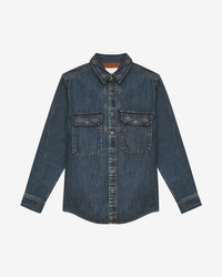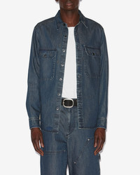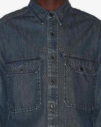Studded denim shirt Shirt collar Shoulder yokes Buttoned front Chest pockets with buttoned flaps Long sleeves Straight buttoned cuffs Studded geometric patterns Embroidery details Rounded hem Straight cut Style: CH0220HAC1H06H30FB OSCO 100% cotton