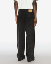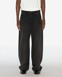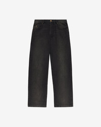 Wide-leg denim jeans Fitted waistband with loops Engraved metal button tab with a zipper 5 classic pockets Metal rivets Leather label in back with an "Isabel Marant" logo Medium-rise waist Style: PA0528HCC3H01H02FK JAMESON 100% cotton