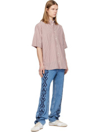 Cotton oxford cloth shirt. · Stripes throughout · Spread collar · Button closure · Patch pocket at chest · Shirttail hem · Dropped shoulders · Logo embroidered at back collar · Logo-engraved hardware Supplier color: Greyish Pink Body: 100% cotton. Trim: 100% polyester. Made in Tunisia 261600M192010