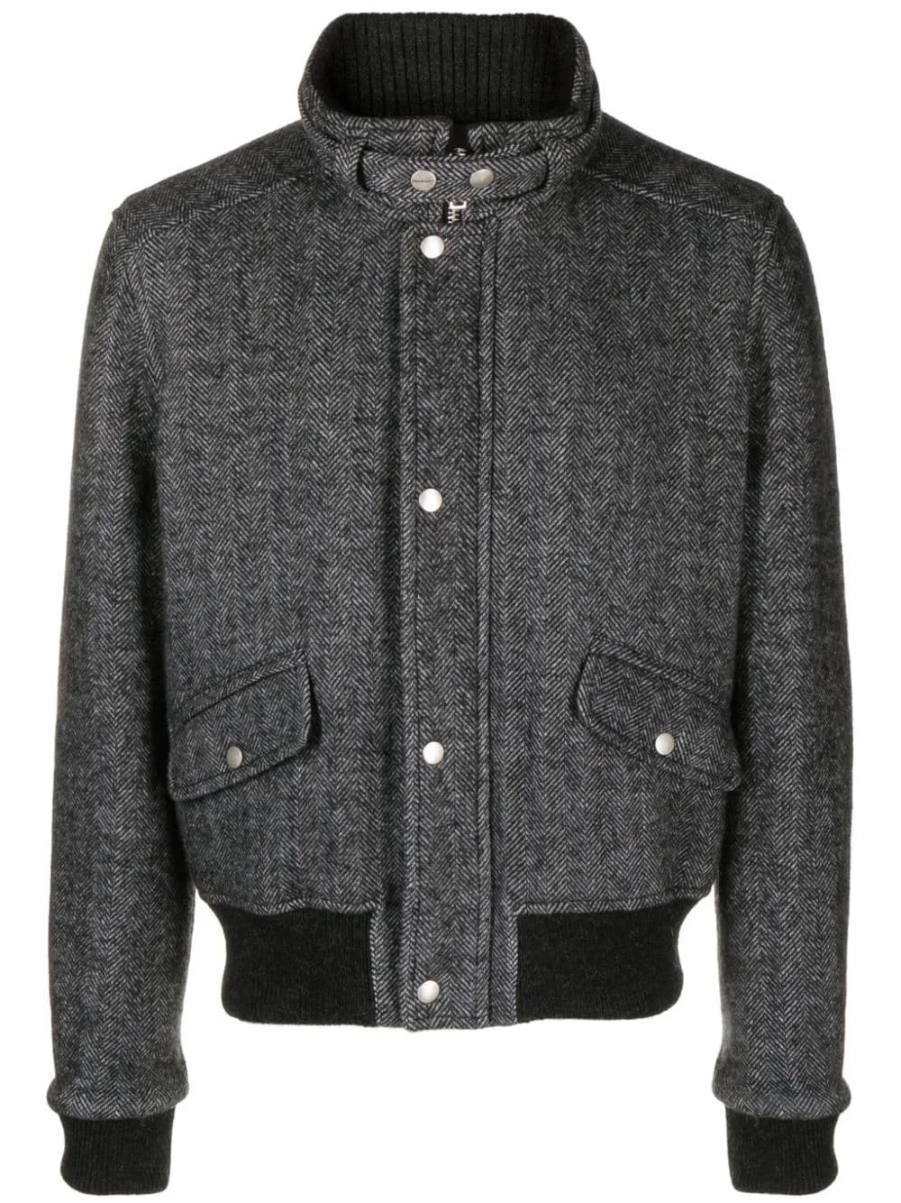 Peter bomber jacket Highlights - Grey - Recycled wool blend - High neck - Front press-stud fastening - Long sleeves - Ribbed cuffs and hem - Two front flap pockets - Straight hem Imported Composition Outer: Recycled Wool 55%, Polyamide 30%, Wool 15% Lining: Viscose 100%, Cotton 100% SIZE & FIT Model measurements Height 6 ft 2 in(1.88 m) Bust/Chest 37.79 in(96 cm) Hips 35.82 in(91 cm) Waist 29.92 in(76 cm) FittingInformation Designed for a relaxed fit, this piece allows for comfort and movement when worn The ribbed hem offers a close, comfortable fit Made from a quilted non-stretch fabric, giving it no natural elasticity This piece fits true to size – take your usual size