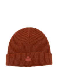 ribbed logo beanie Highlights - Rust - Ribbed knit - Logo patch - Folded brim Imported Composition Wool 100%