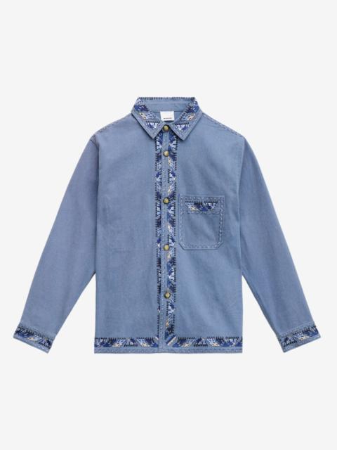 Cotton overshirt with contrasting graphic embroidery Shirt collar Buttoned front Patch pocket on the chest Long sleeves Straight buttoned cuffs Relaxed fit Style: VE0588HAC3I03H23EC RUDY 100% cotton