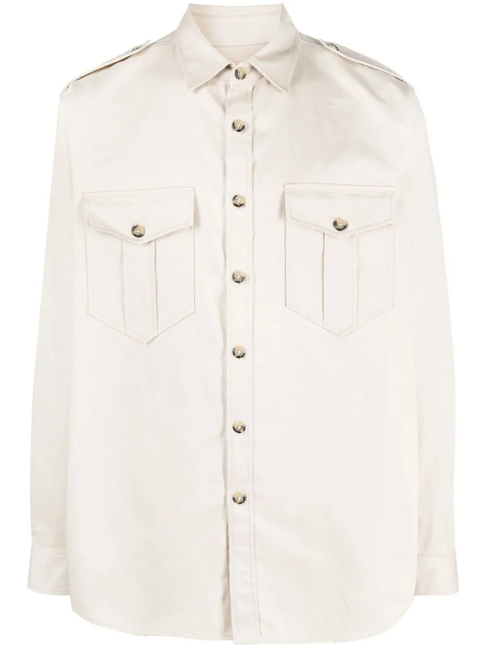 Pomili embroidered shirt Highlights - Light beige - Cotton - Front button fastening - Two chest patch pockets - Classic collar - Embroidered logo to the rear - Long sleeves - Buttoned cuffs - Curved hem Imported Composition Cotton 100%, Polyester 100% SIZE & FIT Model measurements Height 6 ft 2 in(1.87 m) Bust/Chest 38.18 in(97 cm) Hips 36.61 in(93 cm) Waist 29.13 in(74 cm) FittingInformation This piece fits true to size. We recommend you get your regular size Cut for a loose fit Made with a mid-weight non-stretch fabric
