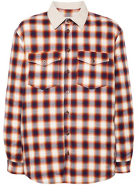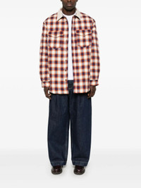 red/white/blue cotton padded design twill weave plaid check pattern front button fastening corduroy collar two chest flap pockets long sleeves buttoned cuffs quilted lining curved hem Size & Fit Model Measurements: Height: 1.84 m Bust/Chest: 90.0 cm Hips: 96.0 cm Waist: 70.0 cm Model wears size L Fabric and Care Designer Style ID: VE0378HAB3I01H Designer Colour: MIRD Composition: Outer: Organic cotton 100%; Lining: Polyester 100%, Cotton 100% Washing instructions: Machine Wash Made in Madagascar