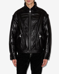 Biker style leather jacket Stand-up collar with tab and metal buckle Long quilted sleeves with snap-fastened cuffs Zip-up front and snap-fastened bottom Zippered side pockets Inside pocket Embossed seams and trim Tightening tabs on the sides Relaxed fit Style: VE0593HA-C4B02H YOSRI 100% lambskin leather