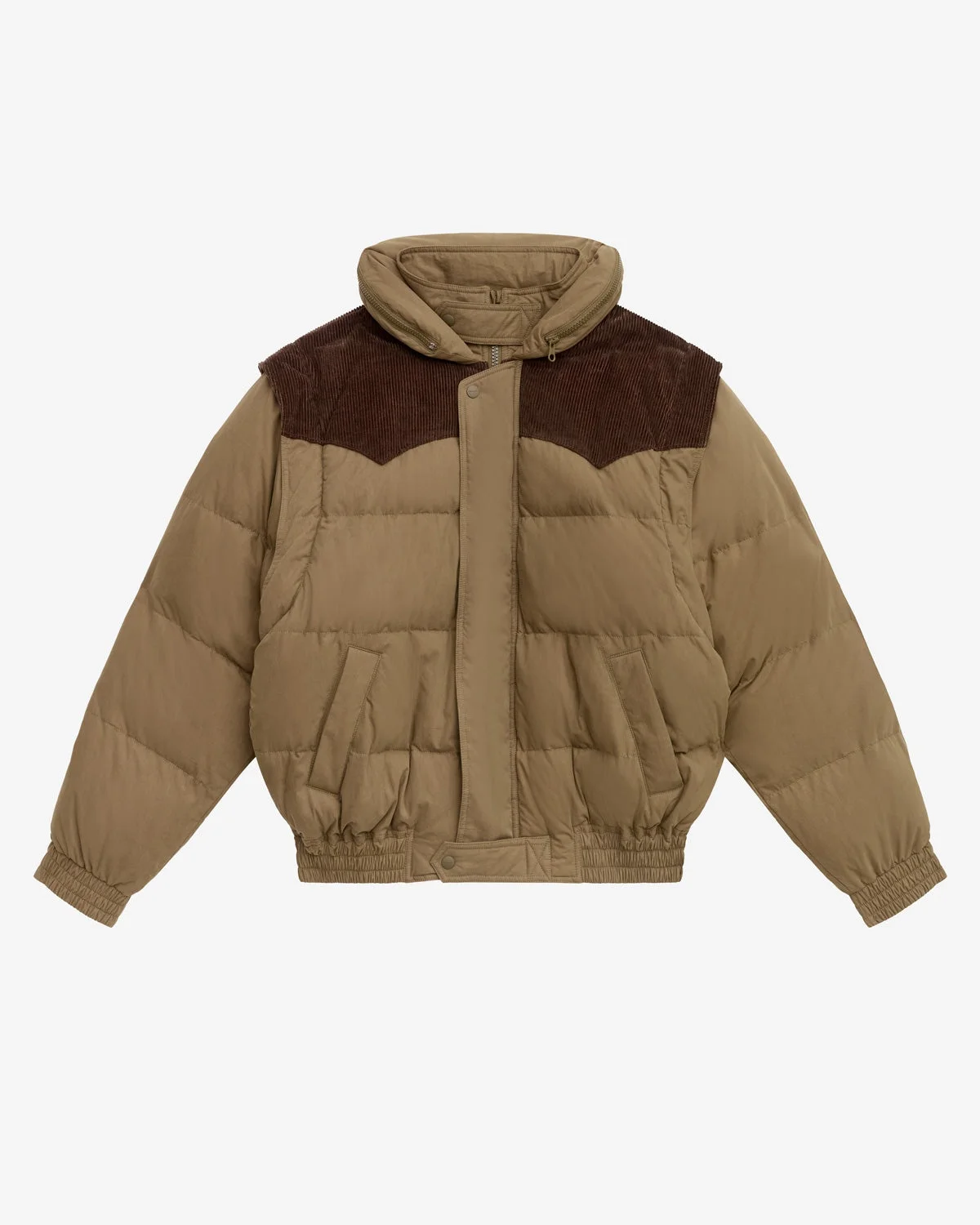 Quilted cotton down coat Stand-up collar with snap-fastened tab Collar with integrated hood Corduroy shoulder yokes Snap-fastened and zippered Raglan side sleeves Long removable sleeves Elasticated cuffs and hem Cropped cut Style: MA0419HAC1C02H67KI YURI 70% cotton, 30% polyamide