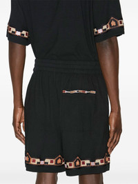 Zilan track shorts Highlights - Black - Elasticated waistband - Two side slit pockets - Rear patch pocket - Embroidered design Imported Composition Outer: Cotton 100%, Viscose 100% Lining: Cotton 100%