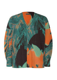 This long-sleeved cardigan is from a print series that uses paint to express the intricate layered beauty of the outside and inside of stones. The pattern, created by the accidental mixing of paints, gives a bold impression. There are pockets on both sides. Product Information Material: 100% polyester Made in the Philippines Neckline / Collar:No Collar / V-Neck Front Opening:Button Pocket (Position):Both Sides Others:Collar Hanging