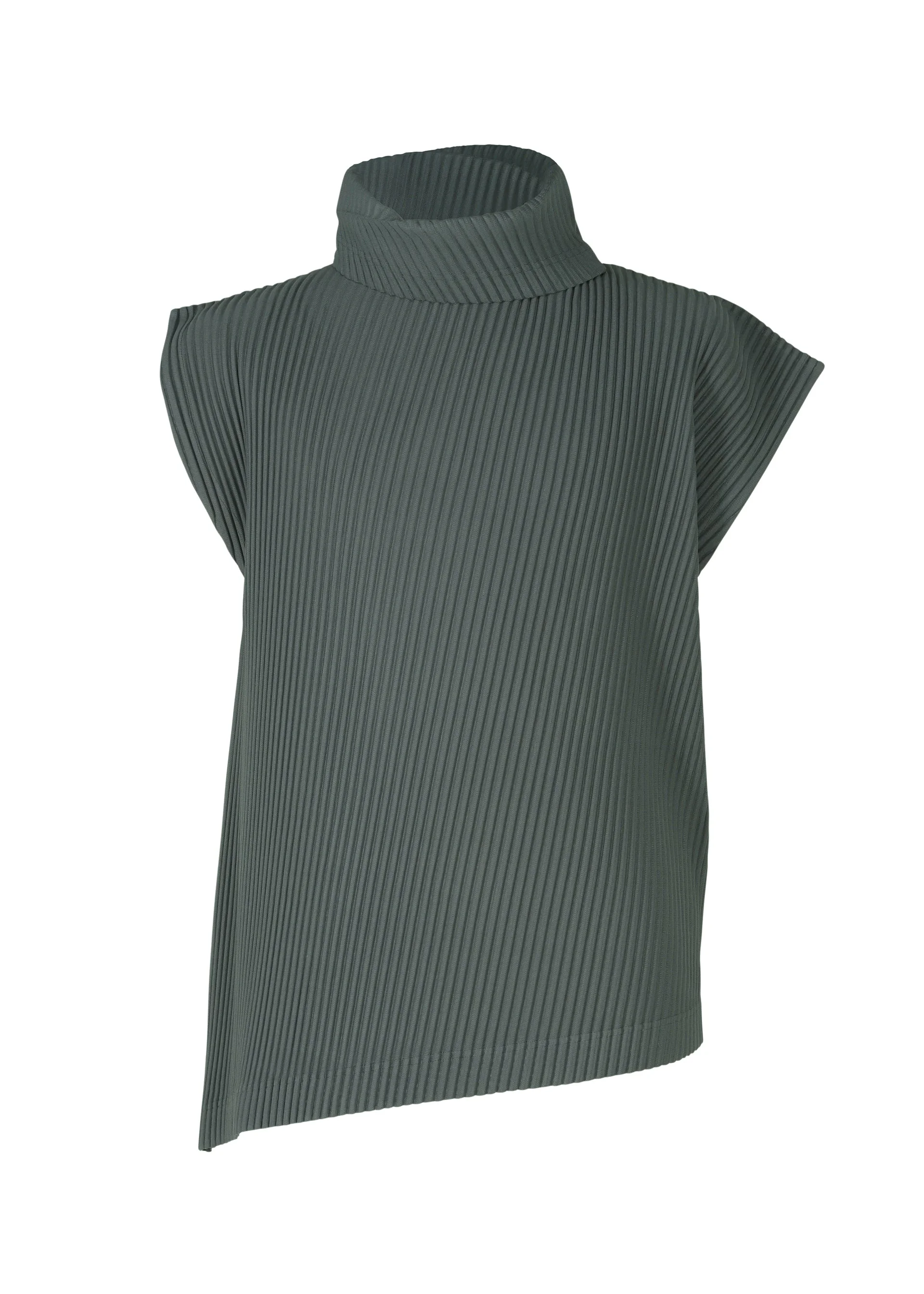 This sleeveless, loose turtleneck top is inspired by the silhouette of stones shaped by the forces of nature. Diagonal pleats are applied to contrast the hard form of stone, resulting in a soft silhouette. The size of this product varies slightly from item to item. Please note this in advance. Product Information Material: 100% polyester Made in the Philippines Neckline / Collar:Off-the-shoulder turtleneck