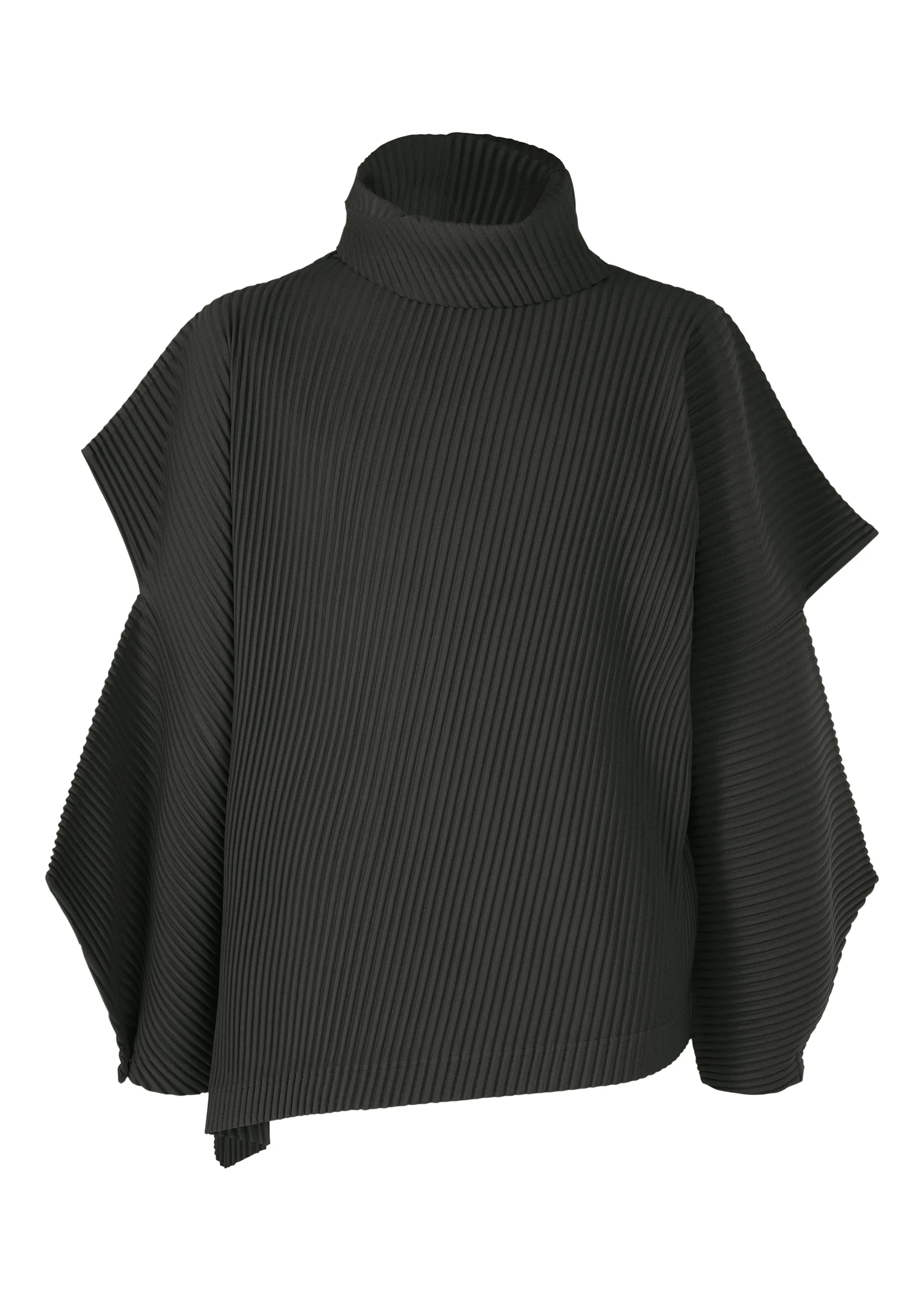 This long-sleeved, loose turtleneck top is inspired by the silhouette of stones shaped by the forces of nature. Diagonal pleats are applied to contrast the hard form of stone, resulting in a soft silhouette. The shape of the top changes depending on whether the sleeve buttons are fastened or unfastened, allowing you to enjoy a variety of styles. Product Information Material: 100% polyester Made in the Philippines Neckline / Collar:Off-the-shoulder turtleneck