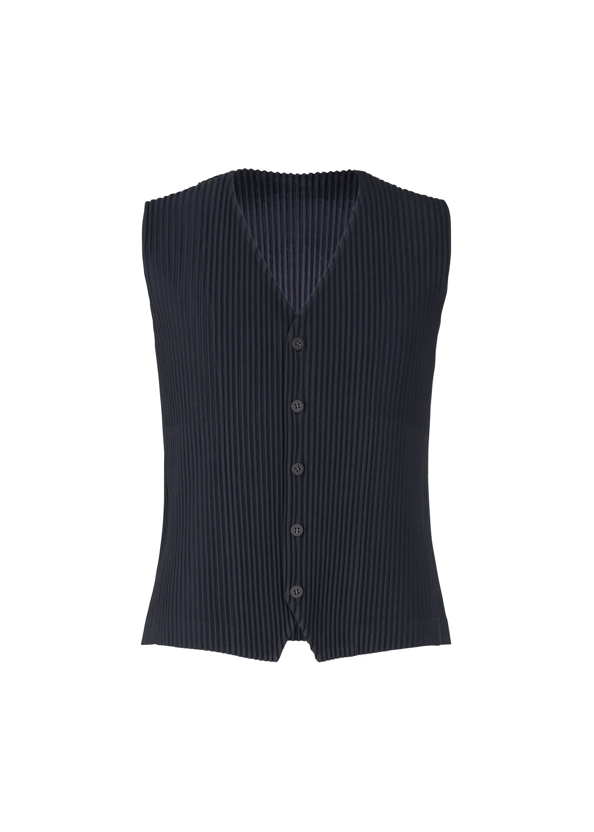 An open-front vest that dries quickly, which is unique to polyester material, and is portable and lightweight. Product Information Material: 100% polyester Lining: 100% polyester neckline/collar:V-neck Front opening:button Pocket (position):both sides