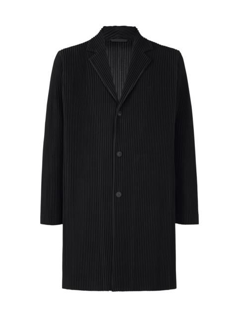 A long jacket that dries quickly, which is unique to polyester material, and is portable and lightweight. A three-dimensional form is achieved by further sewing after pleating. Product Information Material: 100% polyester Lining: 100% polyester neckline/collar:tailored collar Front opening:button Pocket (position):both sides Vent (position):center vent その他:内ポケット 襟吊り
