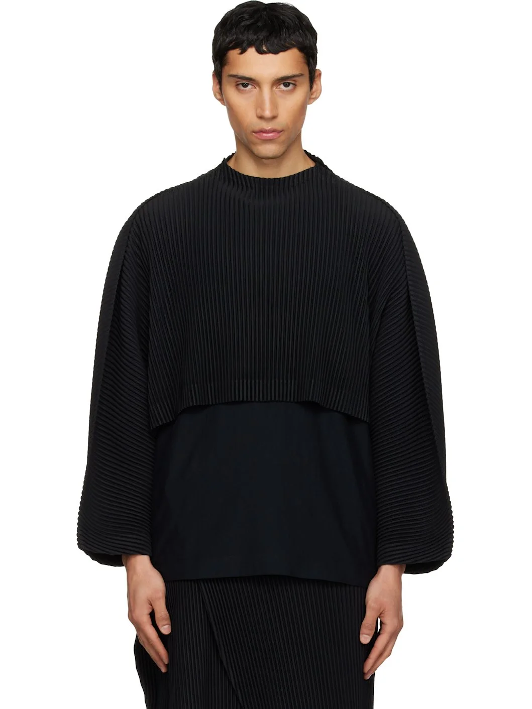 Garment-pleated tricot T-shirt. · Vents at mock neck · Dolman sleeves · Button fastening at cropped hem Supplier color: Black 100% polyester. Made in Philippines 261729M213009