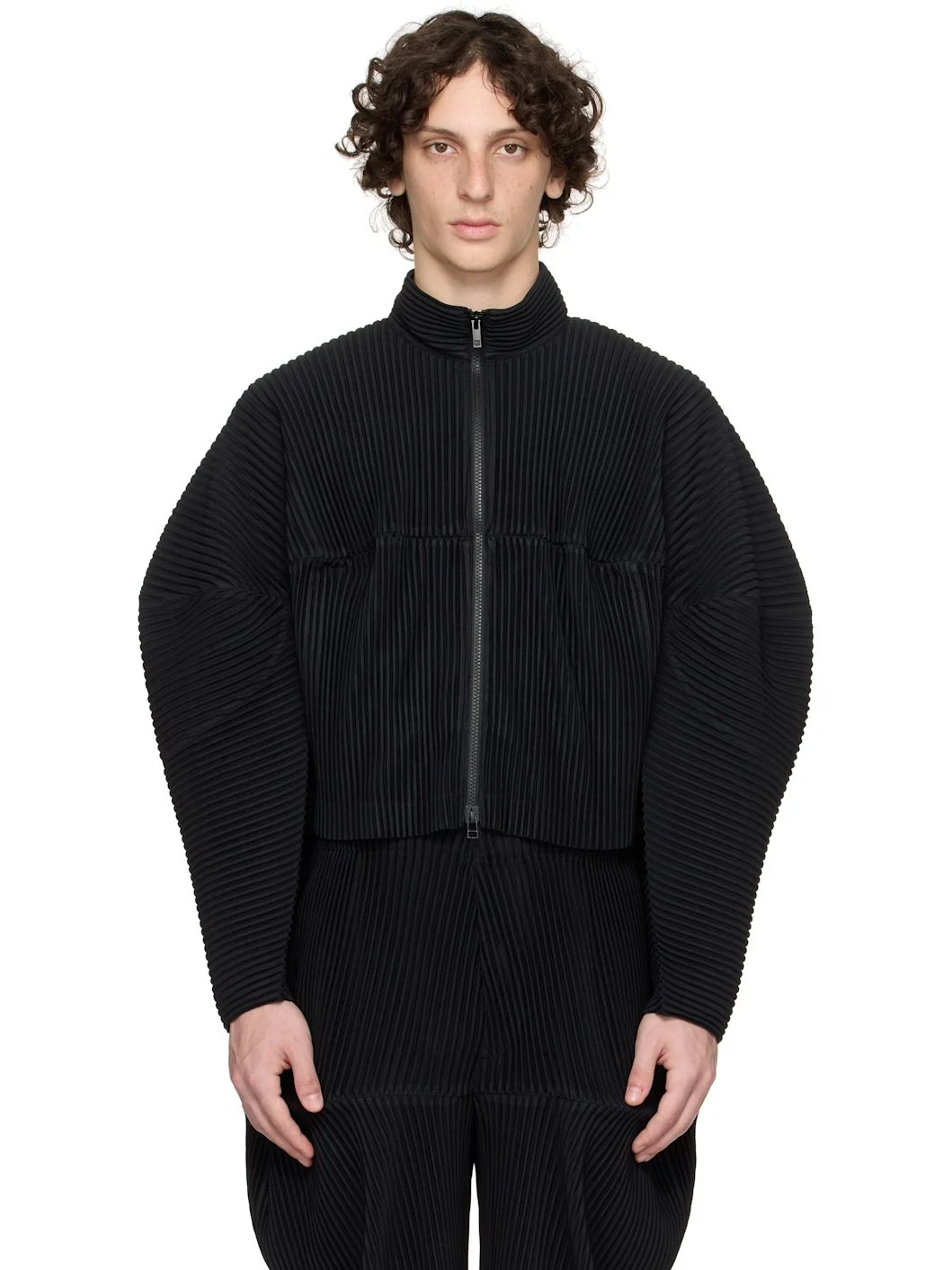 Garment-pleated polyester tricot jacket. · Stand collar · Zip closure · Welt pockets · Dolman sleeves Supplier color: Black 100% polyester. Made in Philippines 252729M180005