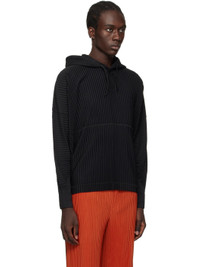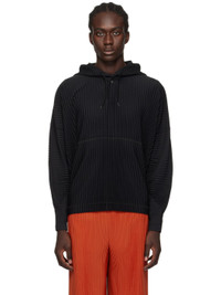 Garment-pleated recycled polyester tricot hoodie. · Drawstring at hood · Single-press-stud placket · Kangaroo pocket · Dropped shoulders Supplier color: Black
