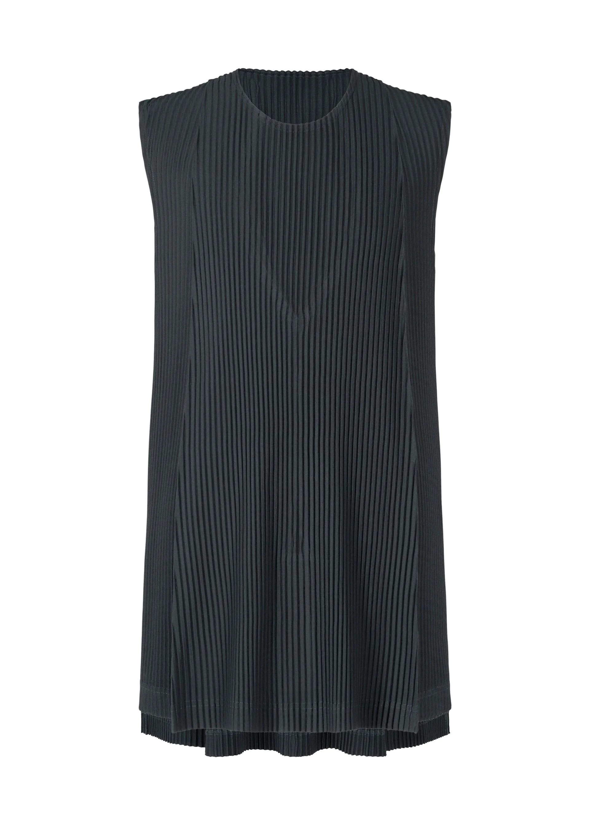This round-neck, sleeveless top is available in refreshing color tones. It is characterized by its portability and light comfort with the unique quick-drying property of polyester material. It has slits on both sides.