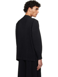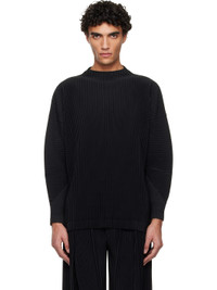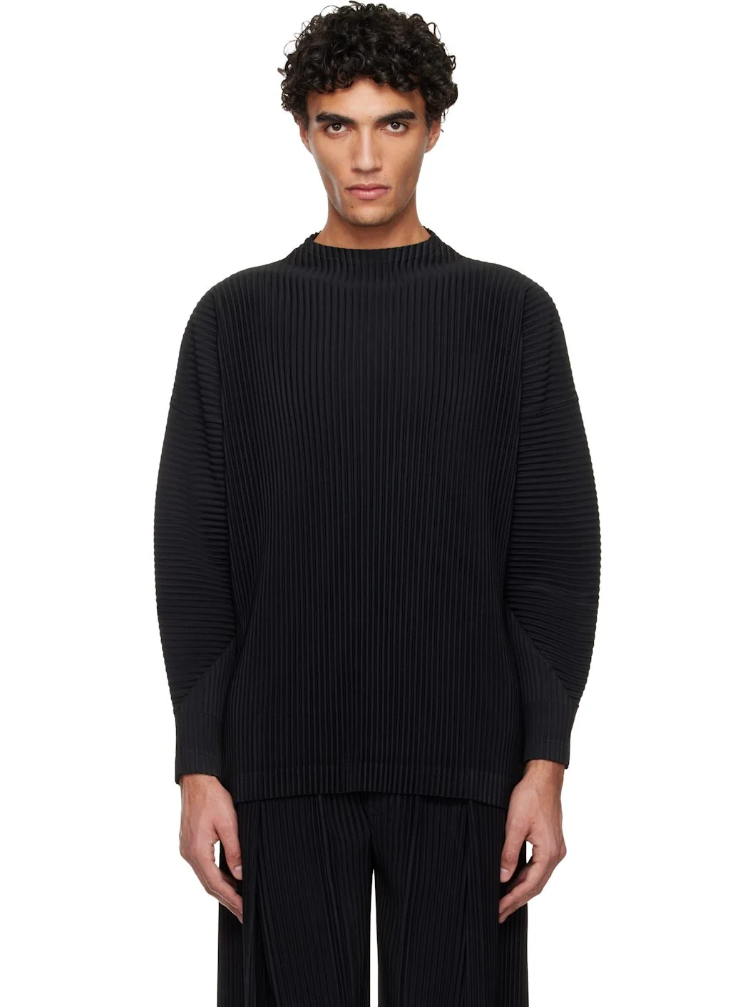 Garment-pleated tricot top. · Mock neck · Tennis-tail hem · Dolman sleeves Supplier color: Black 100% polyester. Made in Japan 252729M213021