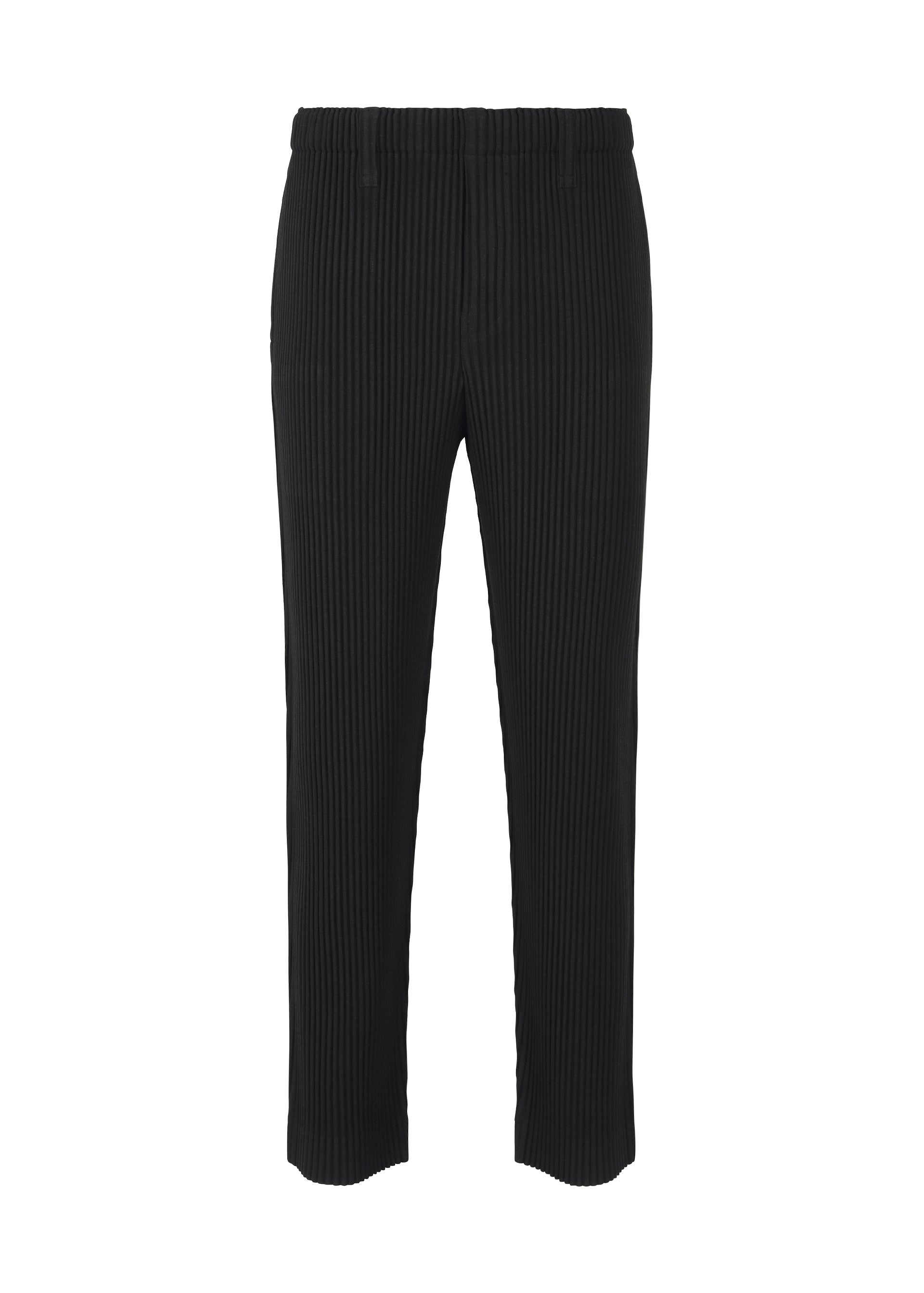 These straight pants are characterized by their soft, supple texture despite being made from polyester. They have pockets on both sides and belt loops at the waist. They have a button-fly design. Product Information Material: 100% polyester Country of origin: Philippines Waist specifications:Rubber/belt loop Front opening specification:button fly Pocket (position):both sides
