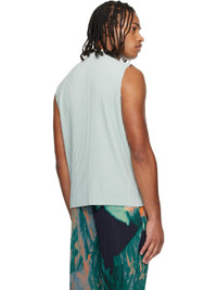 Garment-pleated polyester tricot tank top. Mock neck. Supplier color: Sericite blue 100% polyester. Made in Japan 252729M214002