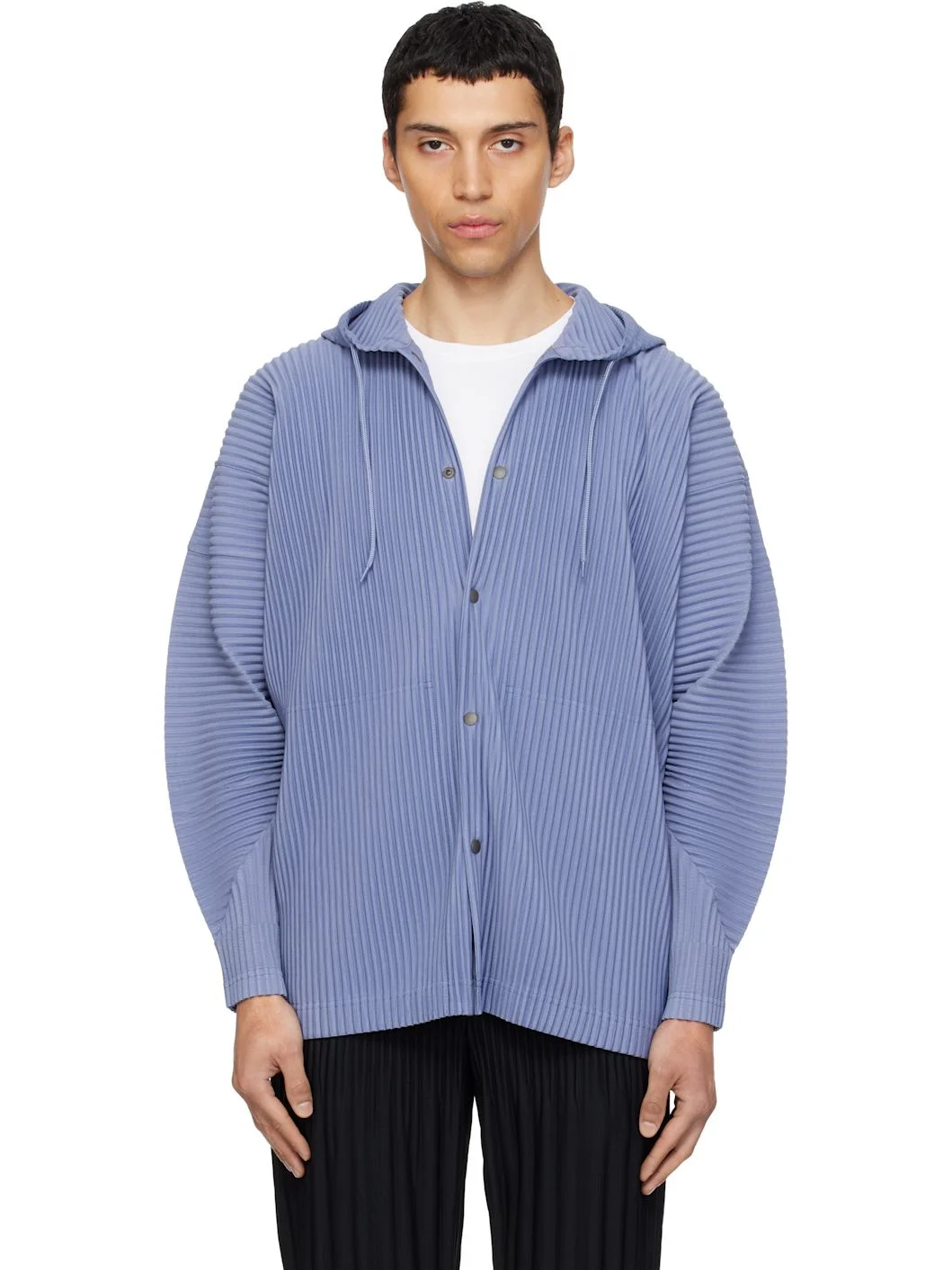 Garment-pleated tricot hoodie. · Quick-drying · Drawstring at hood · Press-stud closure · Seam pockets at waist · Dropped shoulders Supplier color: Manarola Wall Violet 100% polyester. Made in Japan 261729M202011