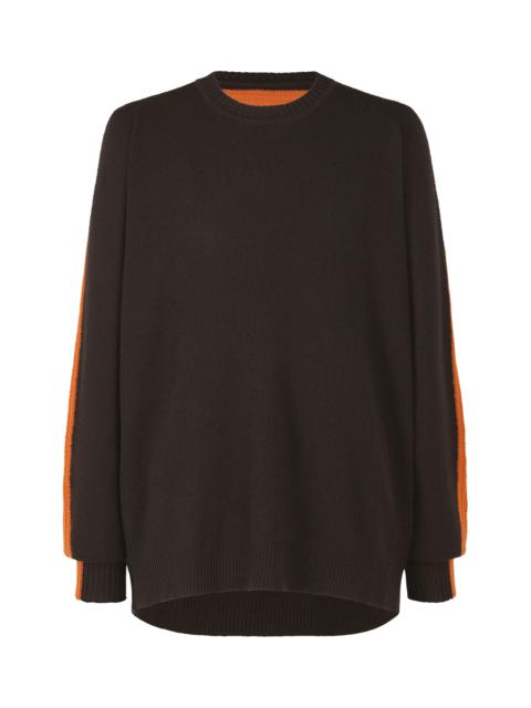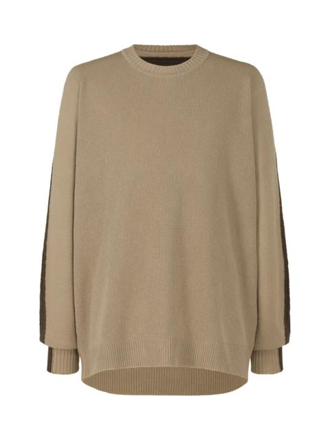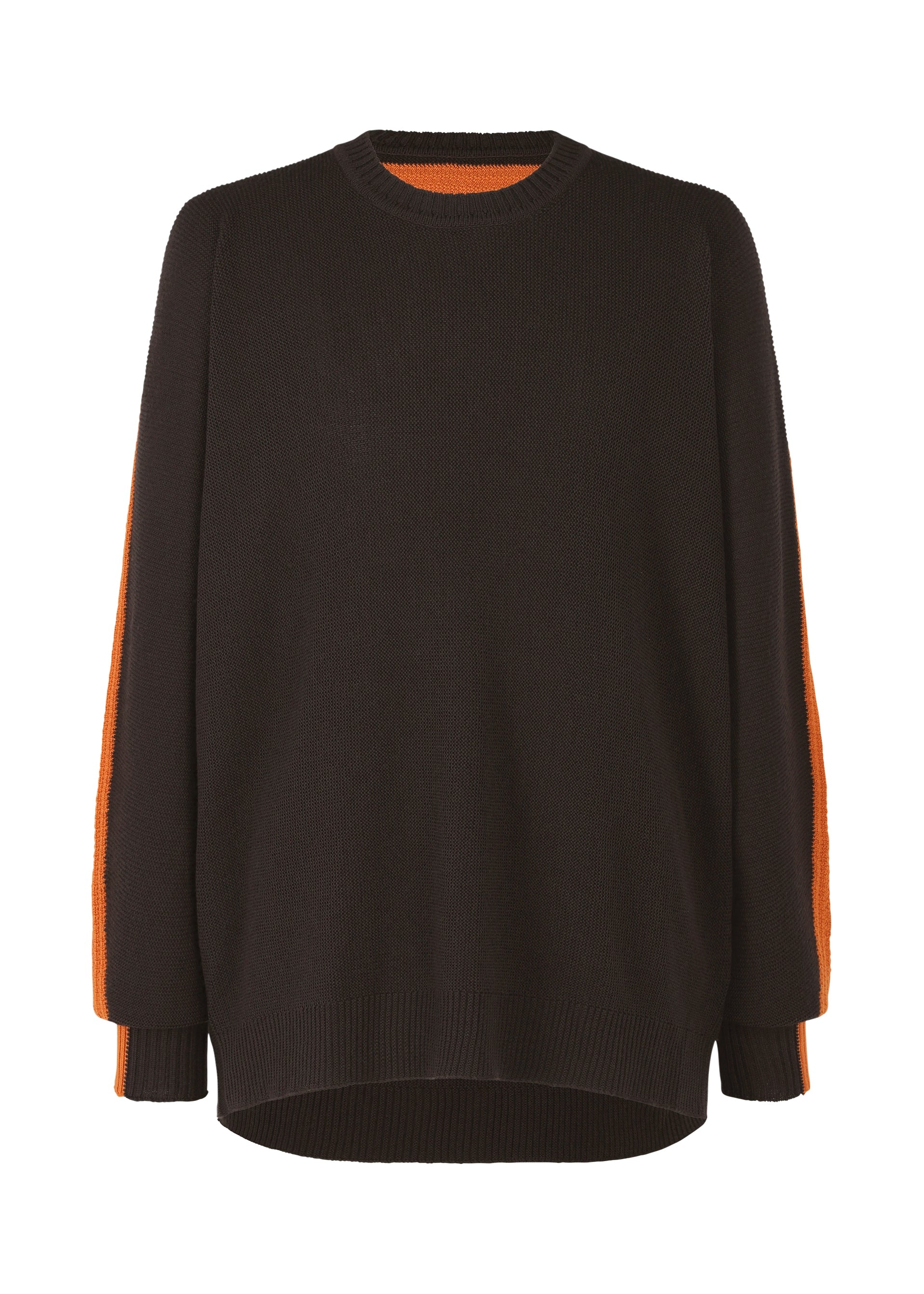 This three-dimensional round-neck knit features lines drawn across the knitted fabric. The lines of designer/artist Ronan Bouroullec's drawings are boldly expressed by alternating the stitches and color scheme. The knit is characterized by its relaxed silhouette. Product Information Material: 100% wool Country of origin: Japan neckline/collar:round neck