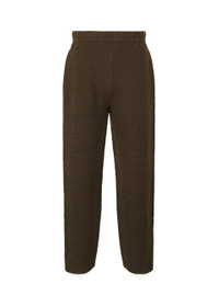 Knit pants with a sharp silhouette that combines classic knitted fabric and ribs. It is characterized by its soft and light texture. There are pockets on both sides and a drawcord inside.