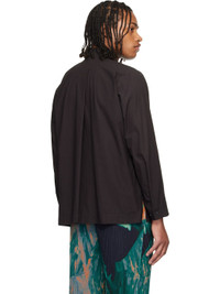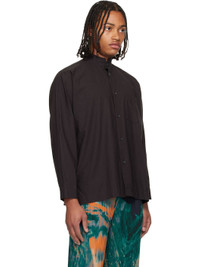 Semi-sheer crinkled organic cotton poplin shirt. · Band collar · Button closure · Patch pocket at chest · Vented side seams · Buttoned barrel cuffs · Box pleat at back yoke Supplier color: Dark brown 100% organic cotton. Made in Philippines 252729M192010