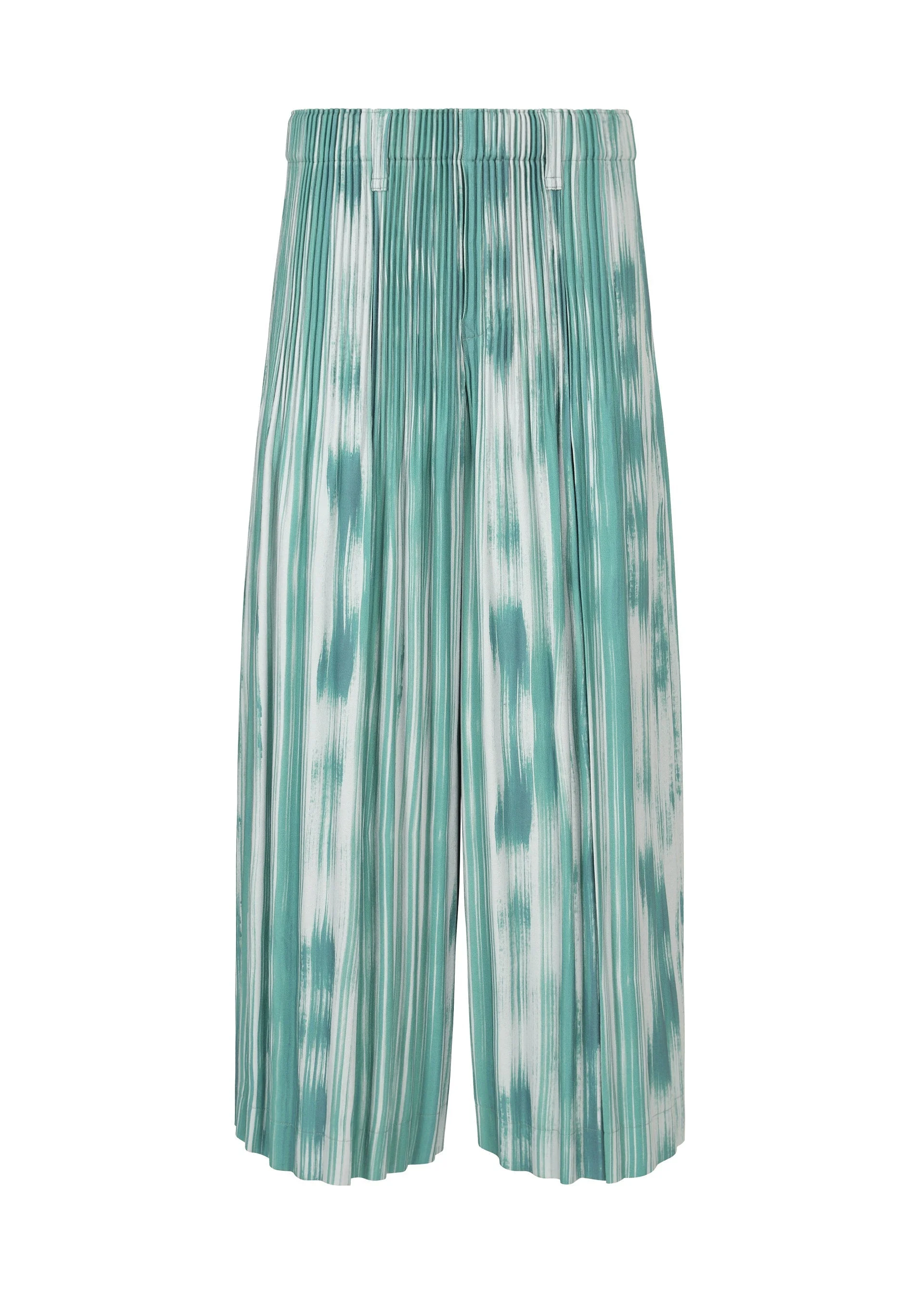 These pants are characterized by their design inspired by the naturally unplanned stripe patterns of stone. You can enjoy the dignified pants style made with material featuring a soft, supple texture despite being polyester. They have pockets on both sides and belt loops at the waist. They have a button-fly design. Product Information Material: 100% polyester Made in the Philippines Waist specifications:Elastic / Belt loop Front opening specification:Button fly Pocket (position):Both sides