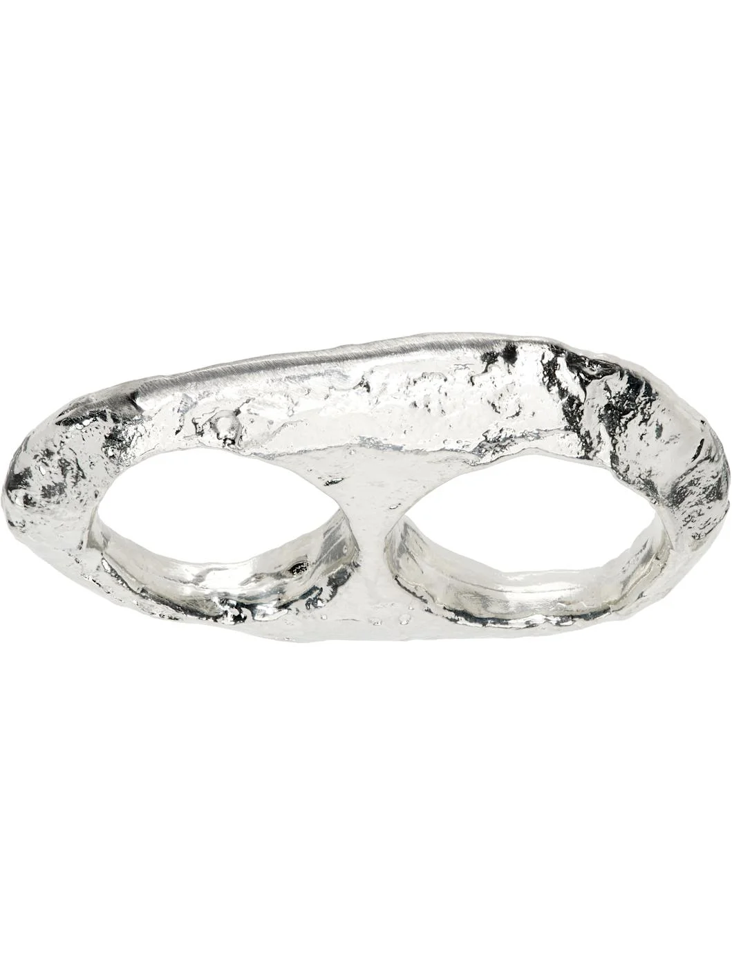 Two-finger ring in silver tone. Hammered detailing throughout. Supplier color: Silver Metal. Made in Japan 261729M147001