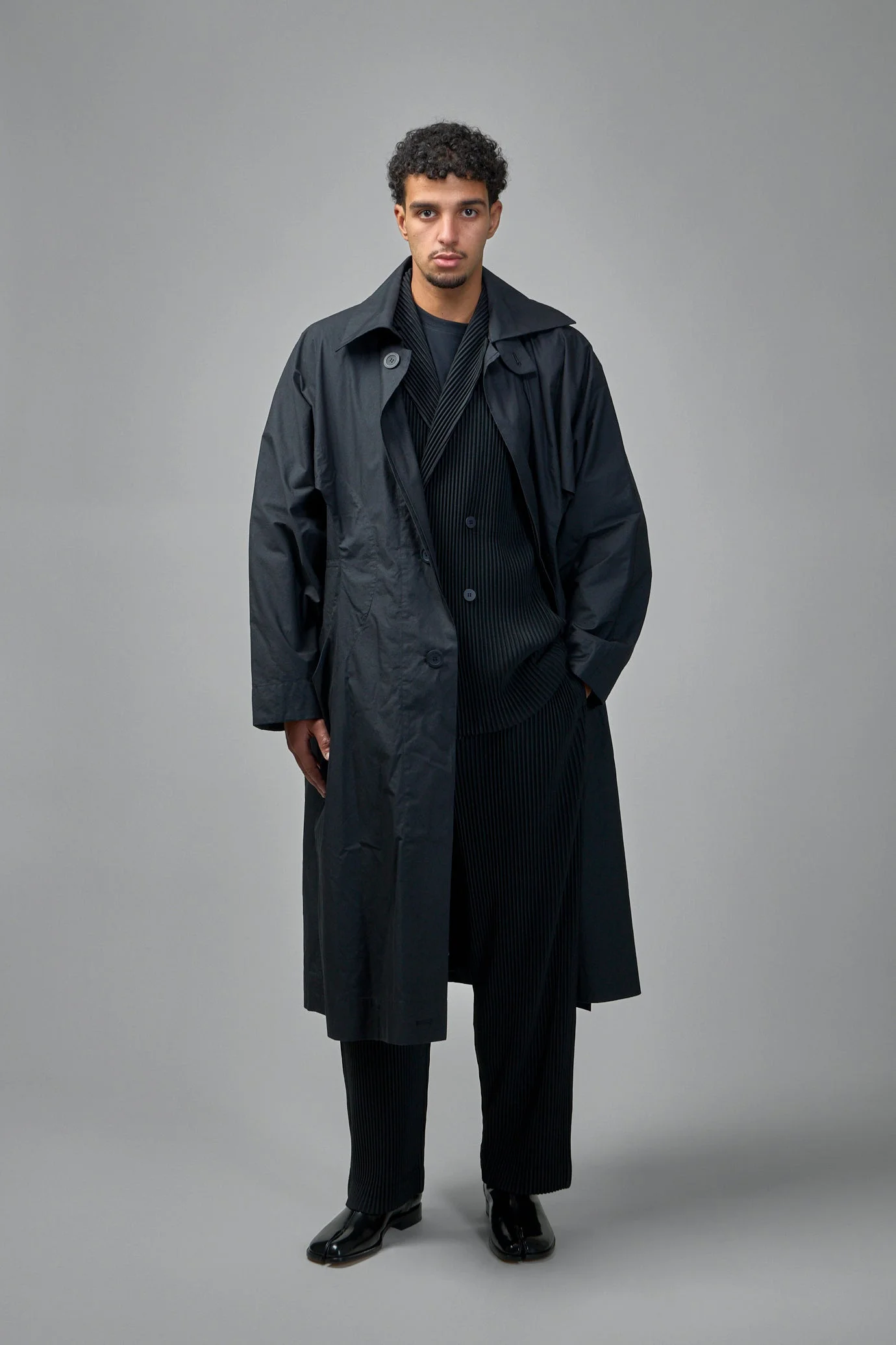 A coats a coat featuring a sleek, minimalist design with a belt. It has a clean silhouette and large button fastening for a refined look. Materials: 100% Polyester Color: black SKU: 152764 Brand style: HP58FA230 Size and Fit The model is 1.89m (6.2ft) and wears a size 3. The item has a looser cut but is not necessarily oversized. It’s intended for a comfortable and easy wear.