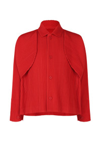 This jacket features a striking design with a large overlapping yoke that extends from the shoulders to the back. The substantial yoke is detachable, allowing you to wear the jacket in various ways depending on your mood. The combination of three-dimensional pleating and architectural design creates an eye-catching style. It has pockets on both sides. Product Information Material: 100% Polyester, Lining: 100% Polyester Made In The Philippines Neckline / Collar:Stand collar Front opening:button Pocket (position):Both sides others:Collar hanger