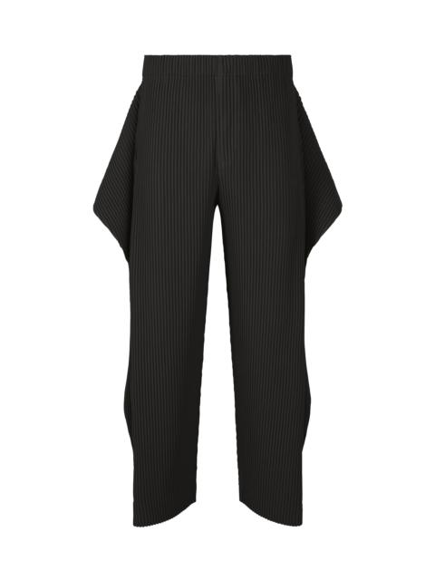 These pants feature a striking detachable part. Buttoning or unbuttoning the part allows you to change the silhouette and enjoy wearing the coat in various ways depending on your mood. The combination of three-dimensional pleating and architectural design creates an eye-catching style. The pants have pockets on both sides and a button-fly design. Product Information Material: 100% Polyester Made In The Philippines Waist specifications:rubber Front opening specification:Button fly Pocket (position):Both sides