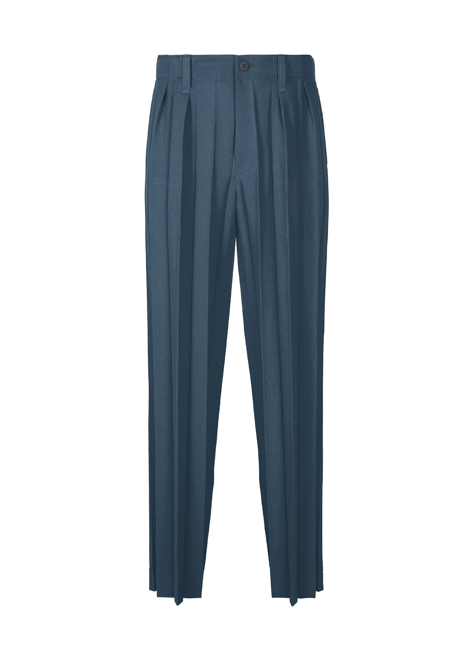 These straight pants feature wide accordion pleats applied to a moderately lustrous material. The ribbed cloth is made of recycled polyester, giving it a feel that is moderately dry to the touch, as well as a casual impression despite the classic design. There are pockets on both sides and belt loops at the waist. They have a button-fly design. Product Information Material: 100% Polyester Made In The Philippines Waist specifications:Elastic / button / belt loop Front opening specification:Button fly Pocket (position):Both sides