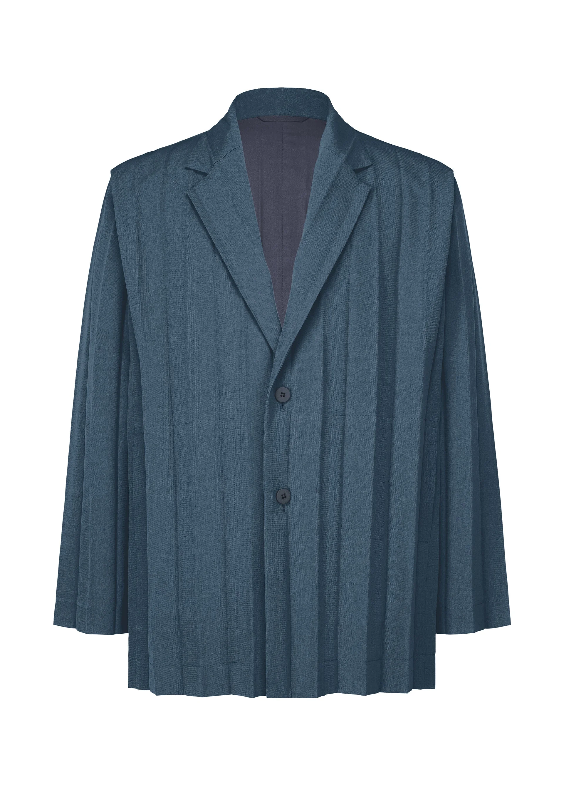 This tailored jacket features wide accordion pleats applied to a moderately lustrous material. The ribbed cloth is made of recycled polyester, giving it a feel that is moderately dry to the touch, as well as a casual impression despite the classic design. There are pockets on both sides. Product Information Material: 100% Polyester, Lining: 100% Polyester Made In The Philippines Neckline / collar:Tailored collar Front opening:Button Pocket (position):Both sides Others:Collar hanger