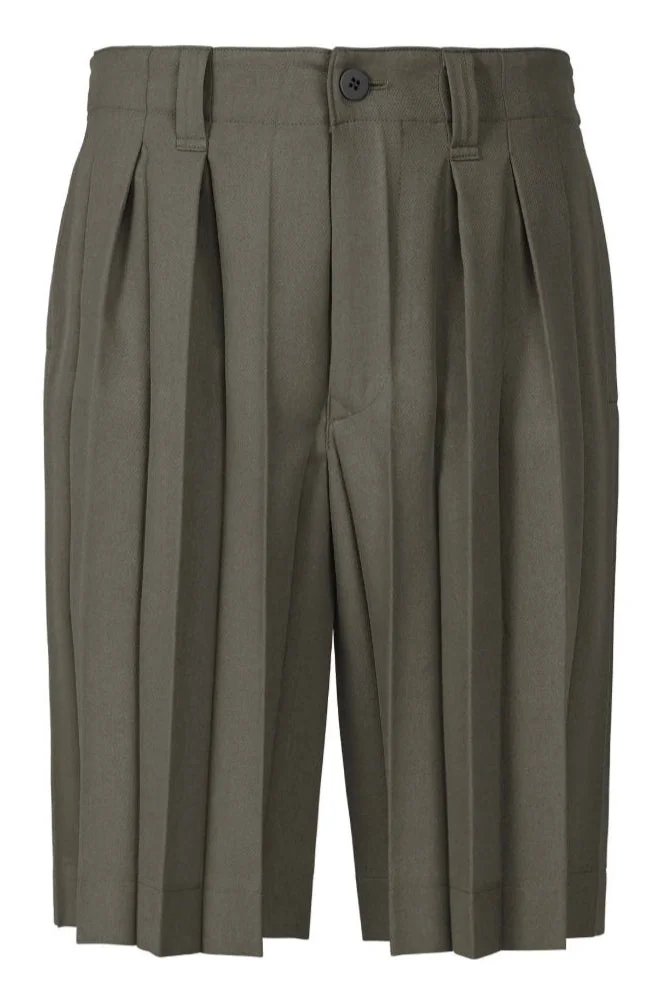 Edge Ensemble Shorts in Dark Brown from Issey Miyake Homme Plisse Highlights - dark brown - large pleats - edge pressed - front buttons and zip closure - belt loops - knee length Made in Philippines Designer ID: HP56FF263 Color ID: 47-DARK BROWN Materials 100% POLYESTER