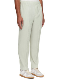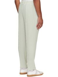 Garment-pleated tricot trousers. · Belt loops at elasticized waistband · Two-pocket styling · Button fly Supplier color: Strata gray 100% polyester. Made in Japan 252729M191049