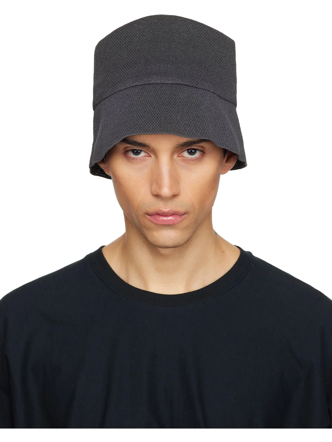 Knit washi paper- and nylon-blend bucket hat. Stretch browband. Supplier color: Gray 38% polyester, 34% paper, 28% nylon. Made in Japan 261729M140001
