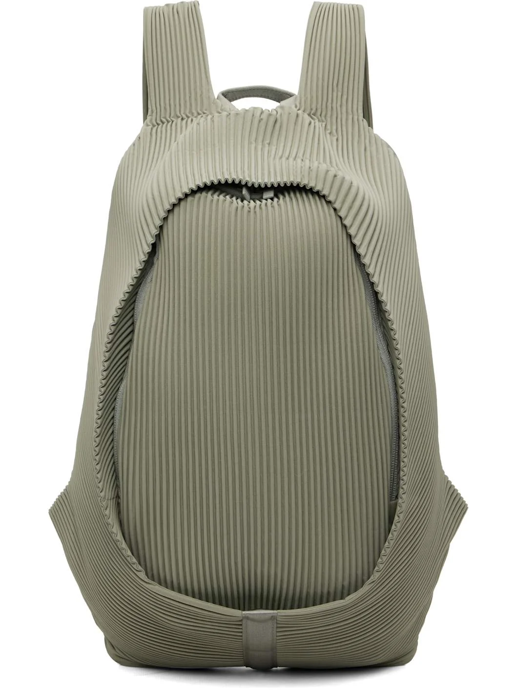 Garment-pleated tricot backpack. · Rolled carry handle · Adjustable shoulder straps · Zip pocket at face · Two-way zip closure · Patch pocket at interior · Taffeta lining · H17.5" x W12.25" x D5.5" Supplier color: Mangan green Body: 100% polyester. Lining: 100% nylon. Made in Japan 261729M166002