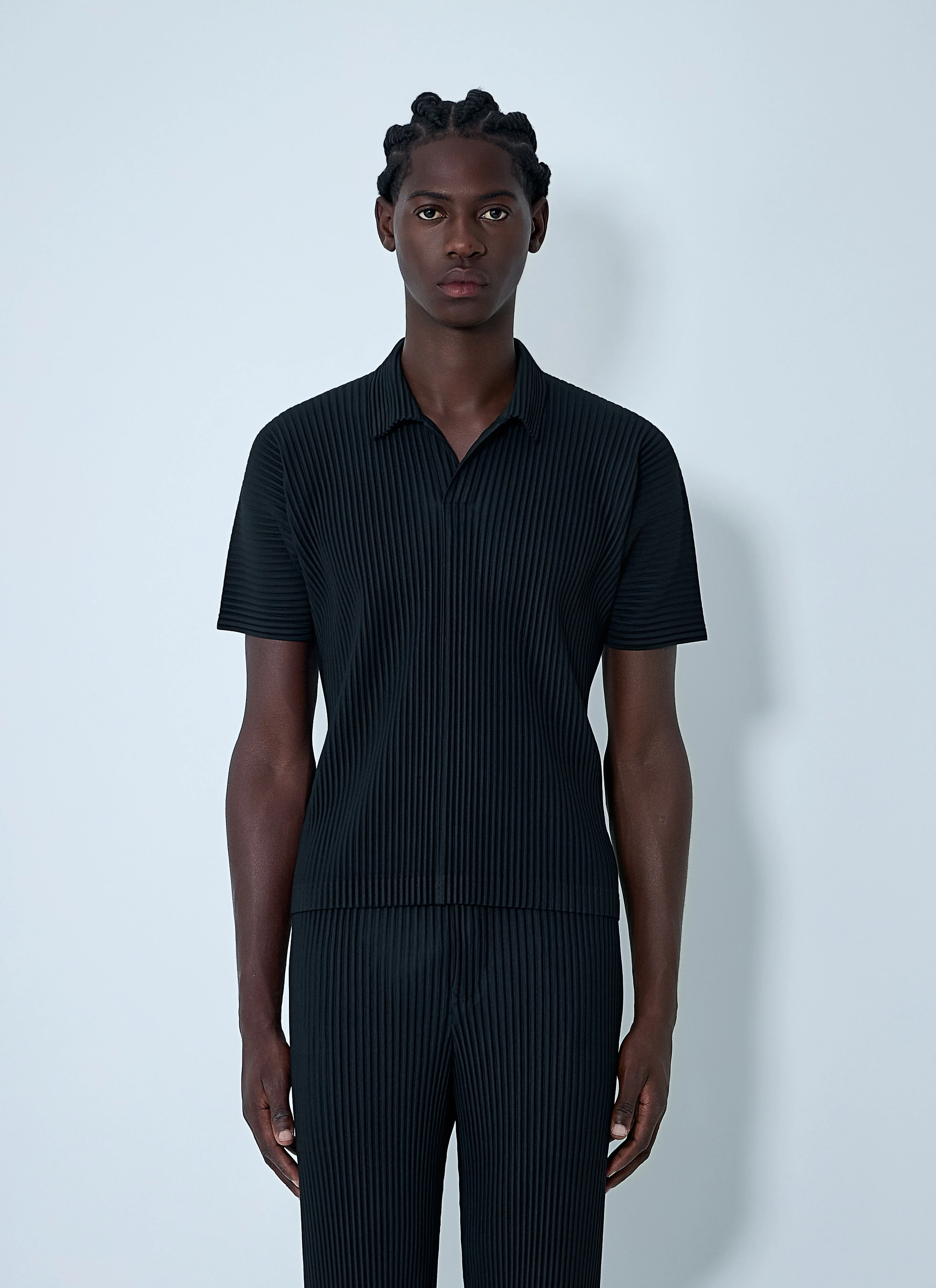 Polo shirt in pleated construction. - Classic collar - Short sleeves - 100% Technical Blend Fabrication. Dry clean - Color: Black - Code: HP58JM530-15