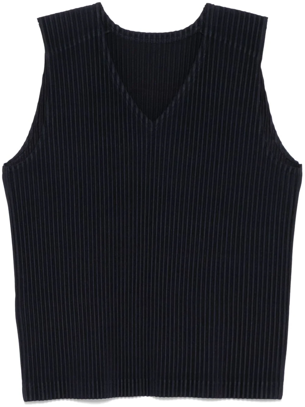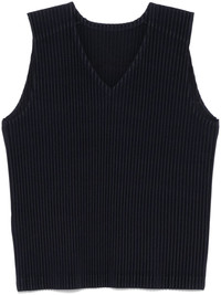 pleated top Highlights - Navy blue - V-neck - Sleeveless Imported Composition Polyester 100%