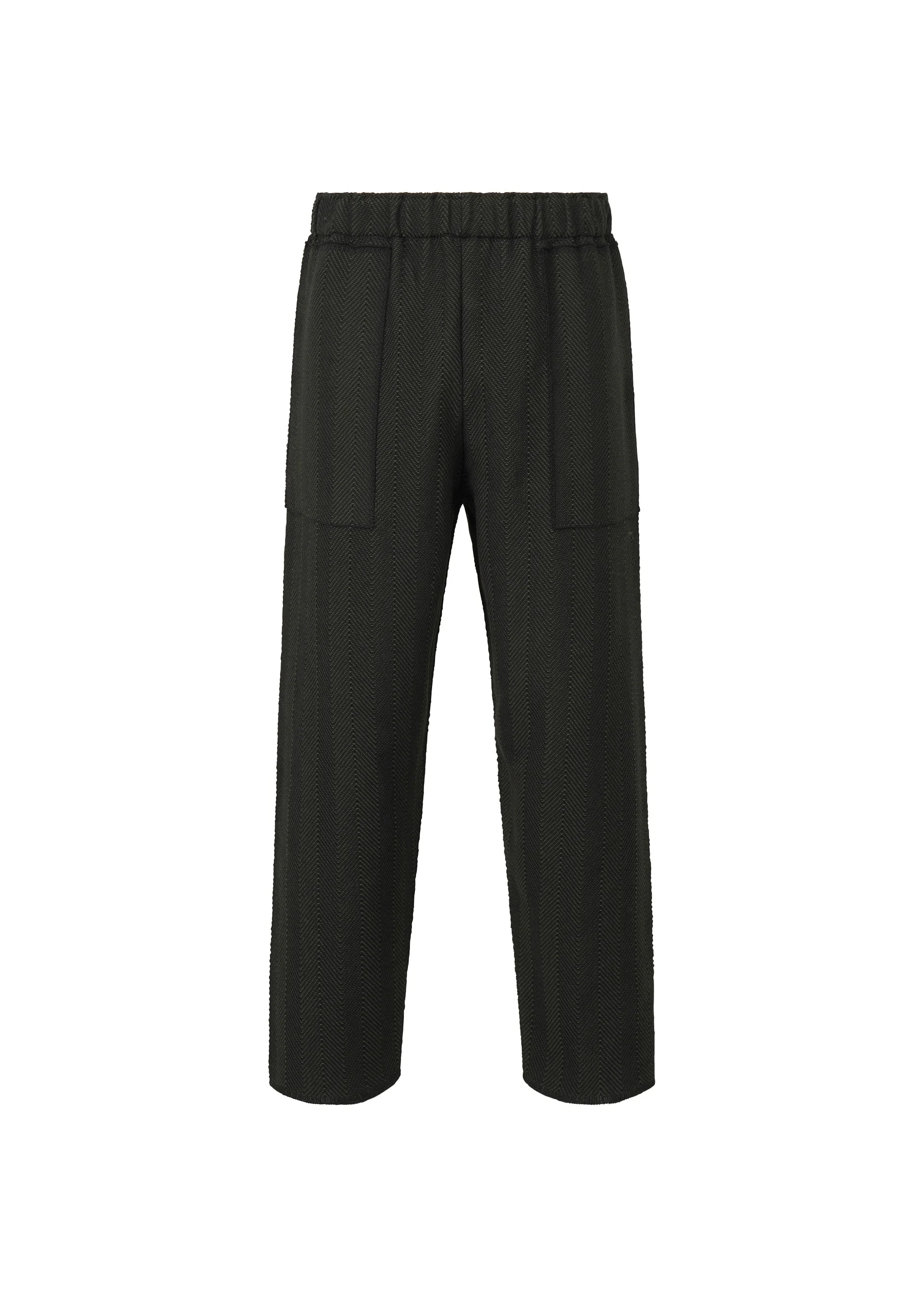 These knit pants feature an expressive look with a herringbone-style knit pattern that emerges with a three-dimensional feel. With their lightweight yet structured design, they are also recommended to be worn as part of a two-piece outfit. The fine knitwork creates shadowing and a subdued sheen that add depth to the look of the fabric. There are pockets on both sides and a drawcord at the waist. Product Information Material: 100% Polyester Made In Japan Waist specifications:Elastic / drawcord Pocket (position):Both sides