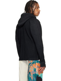 Garment-pleated polyester tricot hoodie. · Two-way zip closure · Balloon sleeves Supplier color: Black 100% polyester. Made in Japan 252729M202010