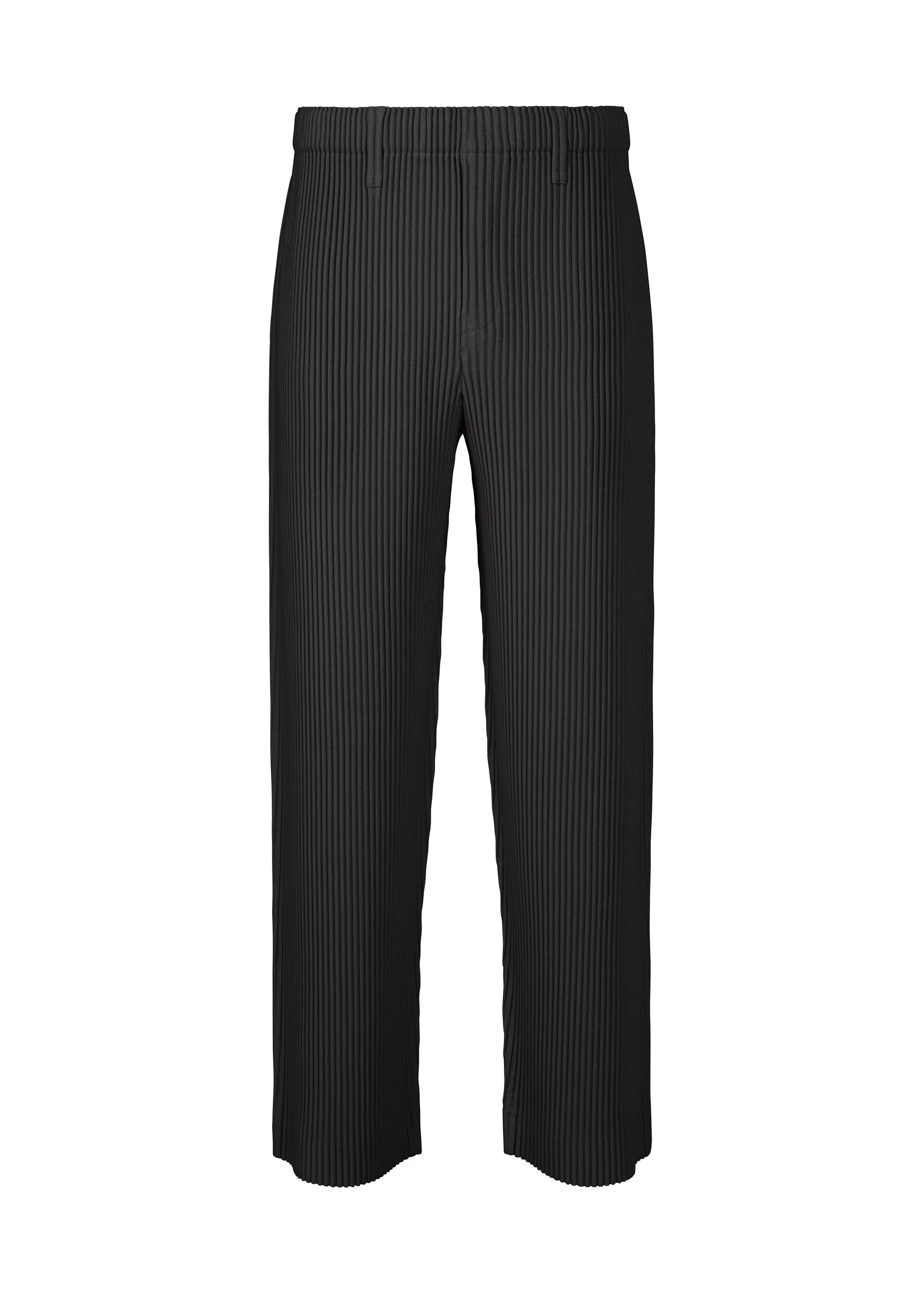 These straight pants are made from kersey (twill)-like material with three-dimensional ribbing that looks diagonal. They are characterized by the light comfort unique to polyester despite their wool-like fluffiness. With their simple design, they can be used in a wide range of occasions, from formal to casual. They have pockets on both sides and belt loops at the waist. They have a button-fly design. Product Information Material: 100% polyester Made in the Philippines Waist specifications:Elastic / Belt loop Front opening specification:Button fly