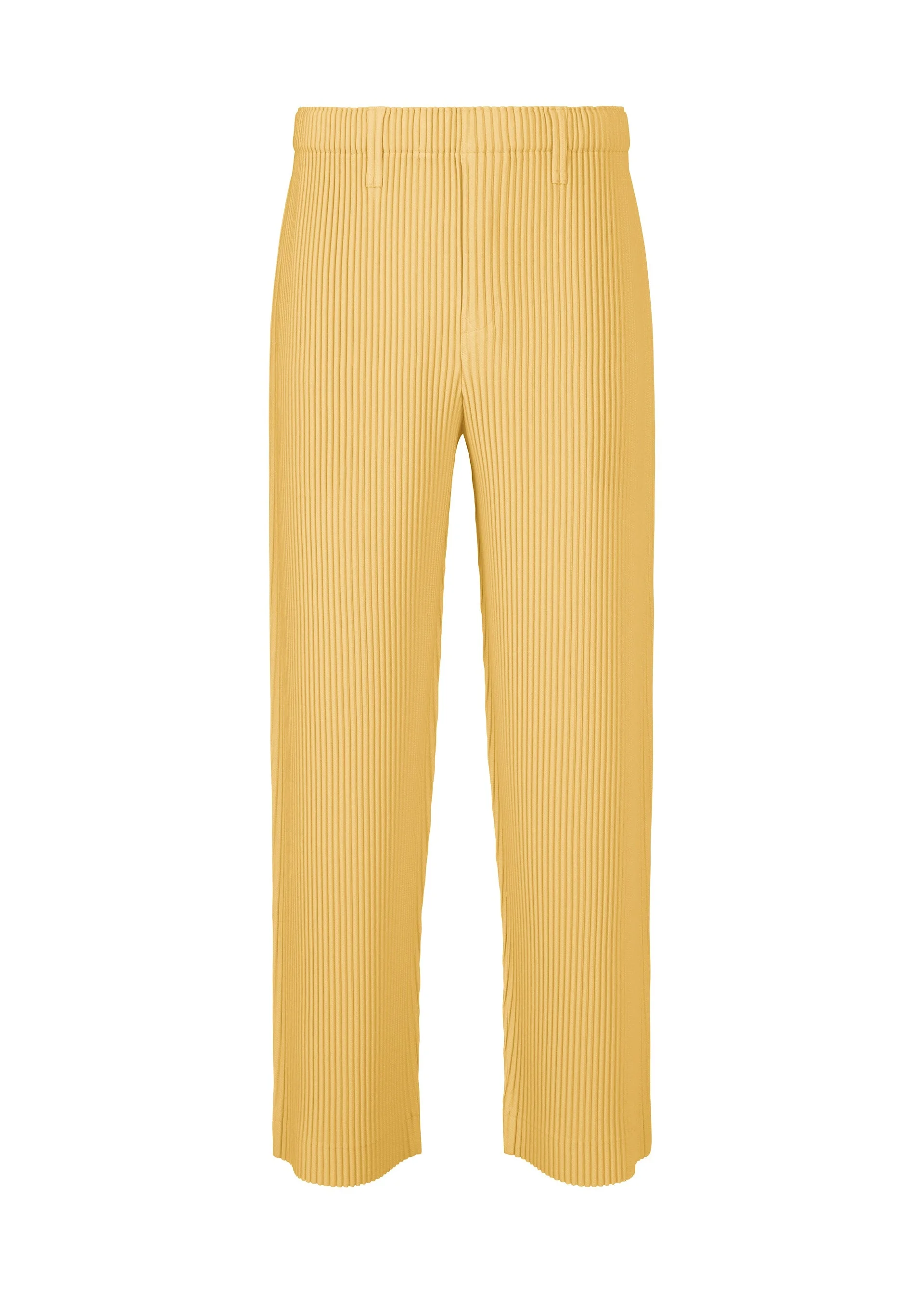 These straight pants are made from kersey (twill)-like material with three-dimensional ribbing that looks diagonal. They are characterized by the light comfort unique to polyester despite their wool-like fluffiness. With their simple design, they can be used in a wide range of occasions, from formal to casual. They have pockets on both sides and belt loops at the waist. They have a button-fly design. Product Information Material: 100% polyester Made in the Philippines Waist specifications:Elastic / Belt loop Front opening specification:Button fly
